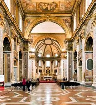 Dopo il crollo del 1688 delle vestigie del tempio romano, i lavori di abbellimento proseguirono, soprattutto a opera di Domenico Antonio Vaccaro e Francesco Solimena, che riutilizzarono i marmi antichi crollati con il terremoto, rilavorandoli e mettendoli in opera all'interno, per rivestire il pavimento e le paraste della navata centrale.