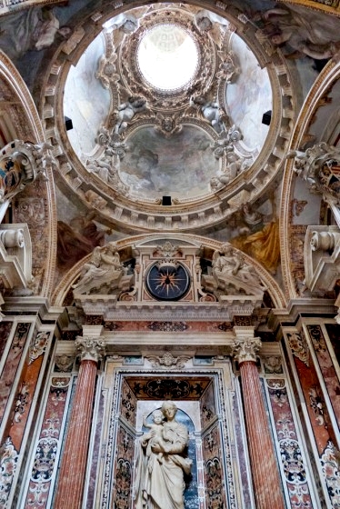 Le navate laterali sono costituite da quattro cappelle l'una, alle quali si alternano altre piccole cappelle contenenti cicli di affreschi, stucchi, sculture, storici presepi o lapidi marmorei. Nel transetto sono invece poste sei cappelle, tre per lato, di cui due lungo le pareti frontali e una posizionata lungo la parete presbiteriale al lato dell'abside. Dalla seconda cappella frontale del transetto destro, infine, è possibile raggiungere la sacrestia di Solimena (attualmente non visitabile per restauri in corso).