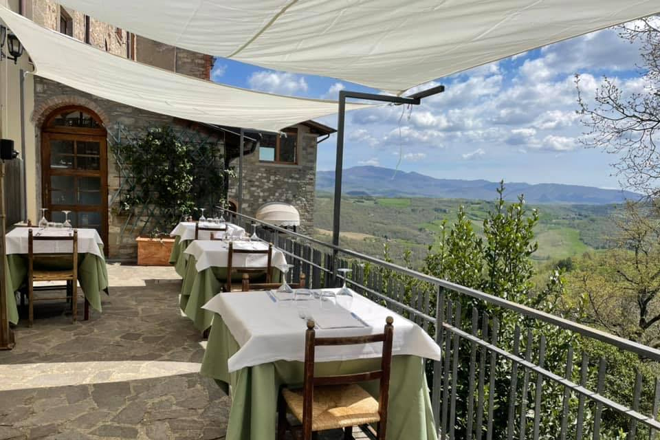 Nel borgo antico, a pochi passi dalla casa natale di Michelangelo, un locale semplice e simpatico, con una veranda coperta e buone proposte della cucina regionale: insalatina al tartufo, ravioli alla capresana, tortellini al tartufo, tagliata di chianina al ginepro, porcini fritti e in granella e crostate con marmellata di more