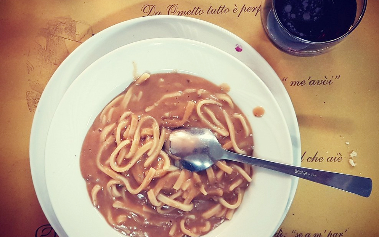 Il locale è ospitato in una vecchia casa isolata dall'atmosfera accogliente, con vista sulle cave di marmo fra Carrara e Colonnata. L'ambiente è familiare e vengono proposti piatti con paste fresche fatte in casa, come i tortelli di carne, i taglierini nei fagioli, le tagliatelle al ragù di cinghiale, e piatti a base di lardo di propria produzione o di funghi, quando è stagione. Si segnalano inoltre la trippa, il baccalà marinato con pomodoro e peperoncino, il coniglio alla cacciatora e il cinghiale con polenta. La pizza è ottima: il pizzaiolo, nipote del fondatore "Ometto", è titolare di premi internazionali