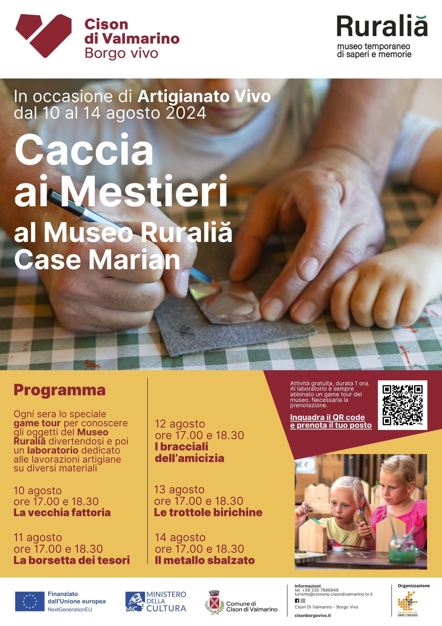 In occasione della rassegna Artigianato Vivo, il Museo Ruraliă allestito all’interno delle Case Marian dal 10 al 14 agosto sarà animato da una serie di attività per imparare a conoscere meglio gli oggetti custoditi nel museo e la loro funzione🖌.