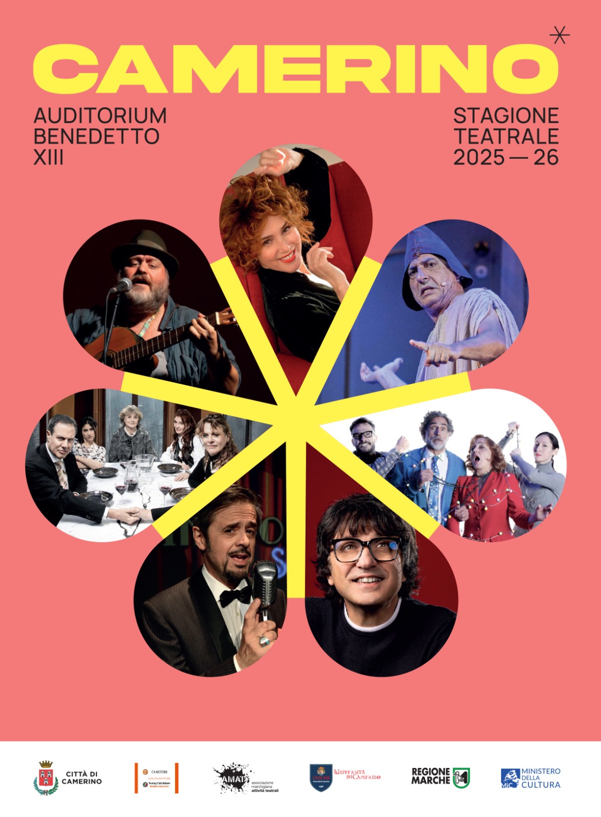 Sette titoli di prosa in abbonamento e quattro appuntamenti con il teatro locale nel cartellone a Camerino, Bandiera Arancione del Touring Club Italiano.