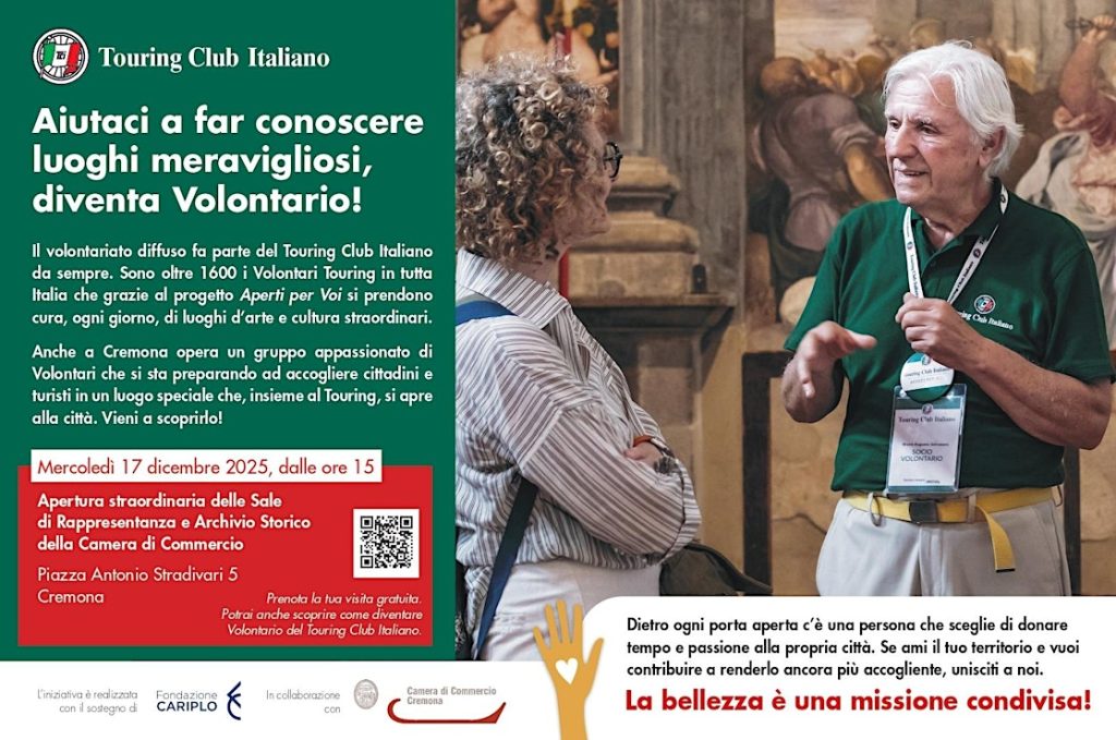 L’obiettivo è quello di potenziare la presenza territoriale del Touring Club Italiano in due province-pilota lombarde – Cremona e Lodi – e favorire la crescita di progetti nazionali di cittadinanza attiva quali Aperti per Voi: nato nel 2005, è un gesto concreto di cura e partecipazione civica. Grazie all’impegno dei Volontari Touring, luoghi d’arte e cultura spesso chiusi o dimenticati tornano a essere accessibili, vissuti e condivisi da tutti. Attraverso Aperti per Voi, cittadini e visitatori diventano parte attiva della valorizzazione del nostro patrimonio, trasformando ogni visita in un’occasione per prendersi cura dell’Italia.
