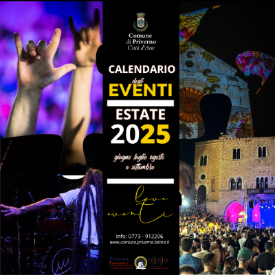 La programmazione degli eventi estivi del Comune di Priverno, un palinsesto di iniziative culturali che anima la Città e le sue location, con musica, teatro, arte, danza, spettacoli, enogastronomia, sport e tradizione, pensato per offrire una varietà di stimoli che soddisfino i desideri di appassionati d’arte e curiosi di tutte le età.