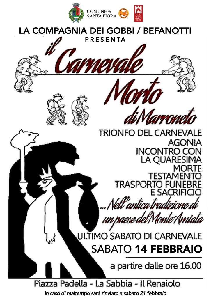 Sabato 14 febbraio, dalle ore 16.00 in piazza Padella, per un goliardico corteo funebre a Marroneto di Santa Fiora, Bandiera Arancione del Touring Club Italiano.