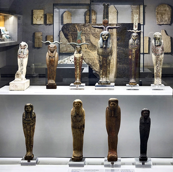 Il nuovo allestimento, distribuito in più sale, è stato organizzato in cinque sezioni tematiche che comprendono gli aspetti caratteristici della civiltà egiziana: la sfera del potere, il mondo dei morti, i culti e la magia, l'organizzazione socio-economica.
