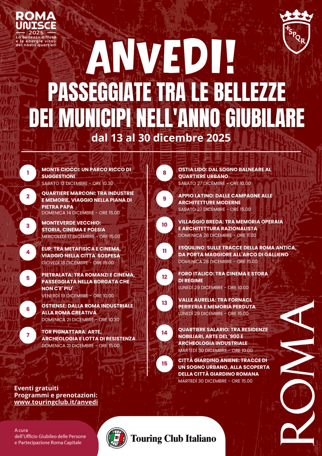 L’anno giubilare rappresenta un’occasione unica per valorizzare il patrimonio storico, artistico e culturale della città di Roma. In questo contesto, il progetto “Anvedi! Passeggiate tra le bellezze dei municipi nell’anno giubilare” intende promuovere una serie di itinerari culturali a piedi attraverso i diversi municipi della Capitale, con l’obiettivo di far conoscere angoli nascosti, storie urbane e testimonianze architettoniche e artistiche, spesso poco note anche ai cittadini.