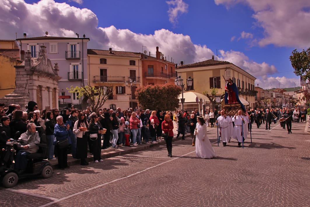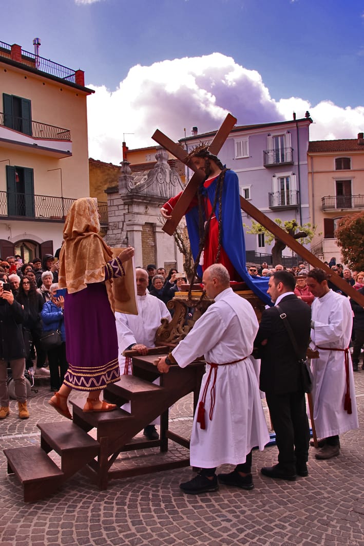 La sacra rappresentazione vede la partecipazione di oltre cinquanta figuranti, tra adulti e bambini, e rappresenta uno degli esempi più autentici di teatro religioso popolare nel Mezzogiorno. In passato alcuni ruoli venivano addirittura assegnati attraverso una sorta di “asta”, segno della forte devozione e dell’onore che la popolazione attribuisce alla partecipazione alla processione.