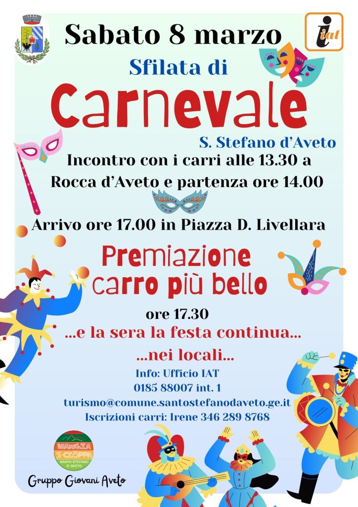 Sabato 8 marzo, lo splendido borgo di Santo Stefano d'Aveto, si riempirà di colori, musica e allegria per la tradizionale Sfilata di Carnevale, organizzata dal Comune di Santo Stefano d’Aveto, dall’A.S.D. Maestri di Sci e MTB e dal Gruppo Giovani Aveto!