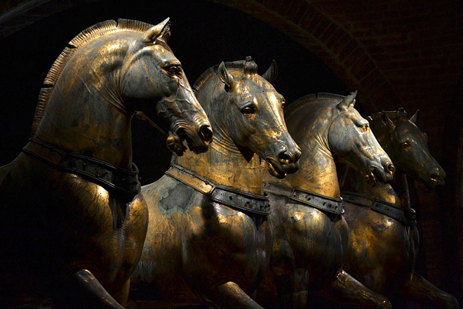 Passaggio dal matroneo e percorso di ritorno con singolari testimonianze scultoree dal VI al secolo XI, la quadriga originale e colonne e capitelli costantinopolitani: uscita nella loggia sulla piazza e fine della visita.