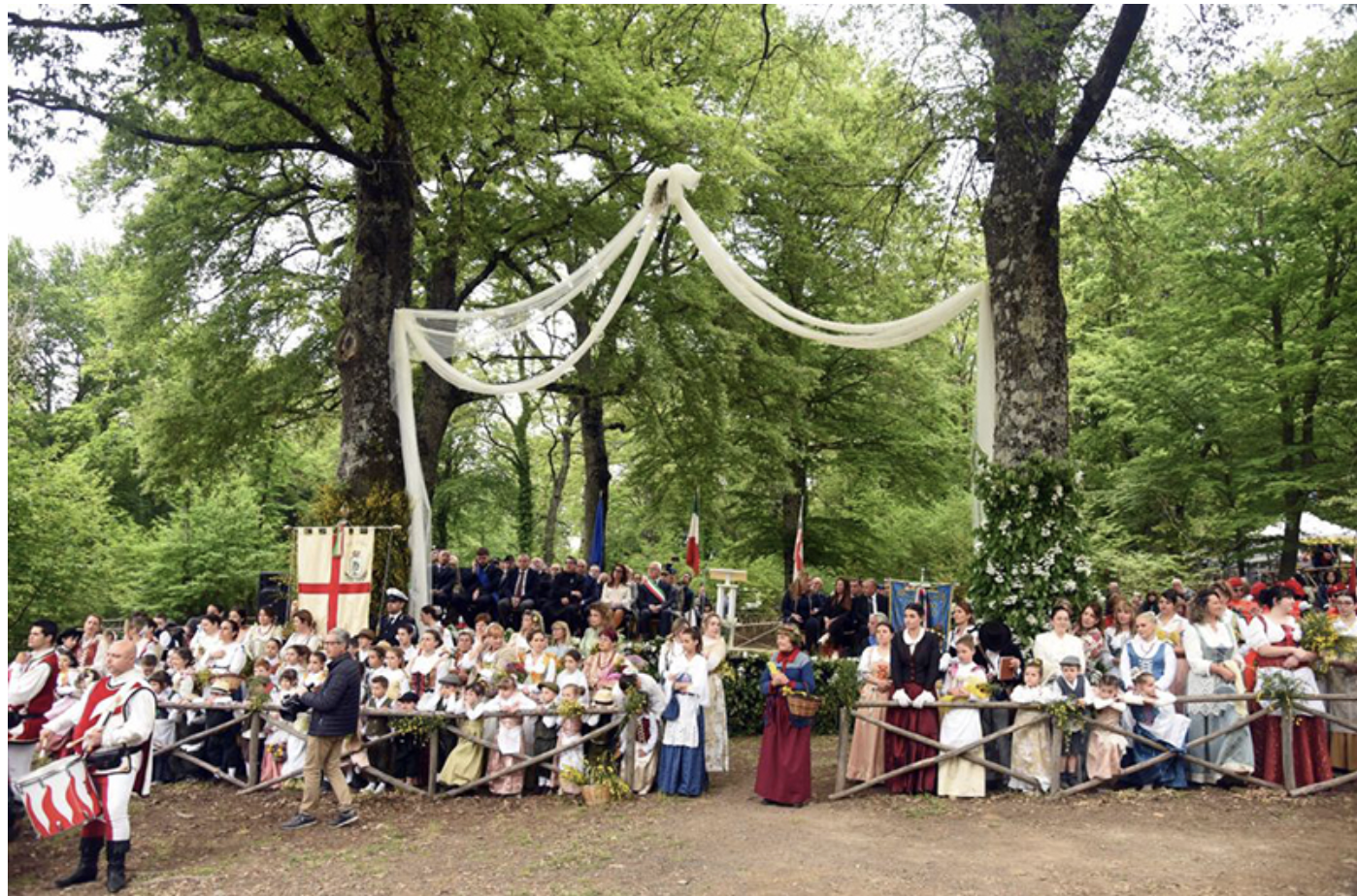 Lo “Sposalizio dell’albero” viene simbolicamente celebrato dal segretario comunale di Vetralla (con funzioni notarili) la mattina dell’8 maggio all’ombra di due cerri d’alto fusto sul monte Fogliano (presso il convento dei passionisti di Sant’Angelo) ammantati di tulle, ghirlande e fiori silvestri. A pronunciare il “sì” è il primo cittadino del paese alla presenza di testimoni, di un folto gruppo di curiosi, di boscaioli a cavallo e della banda musicale, secondo un copione consolidato da almeno cinque secoli che per antica tradizione è chiamato lo “Sposalizio dell’albero”. Viene riaffermato il diritto di possedimento da parte della comunità vetrallese sui boschi del Fogliano che venne concesso nel Quattrocento dal pontefice Eugenio IV. In caso contrario quei boschi andrebbero ad altri beneficiari.