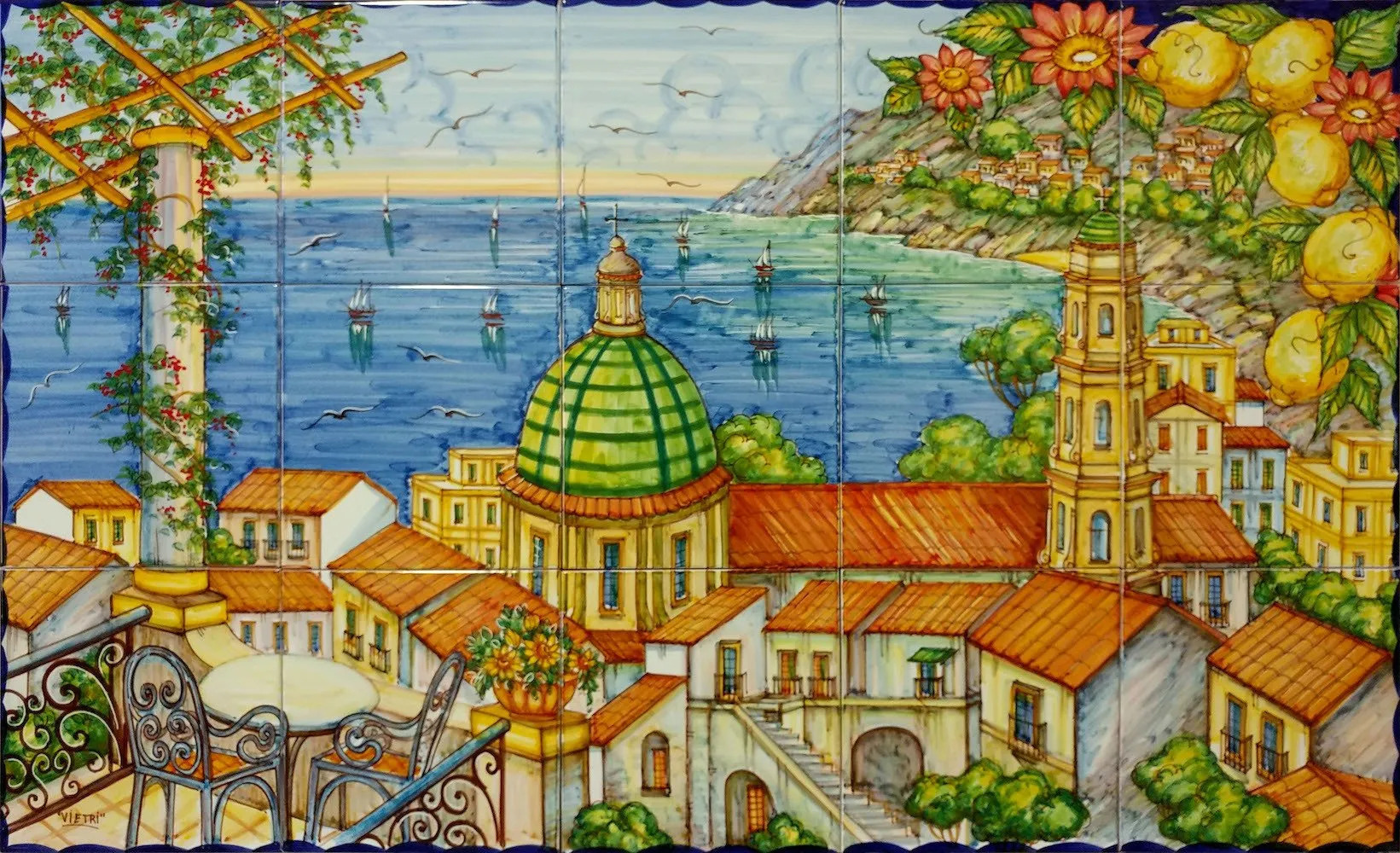 VIETRI SUL MARE – dichiarata patrimonio dell'Umanità dall'Unesco - è affacciata su un lembo di costa dalla bellezza davvero incomparabile. Punto di partenza della famosa Costa d'Amalfi, è situata all'estremità della valle Metelliana, di fronte all'entrata settentrionale della città di Salerno. La sua storia ci riporta all’antica Marcina, importante centro mercantile di origini etrusche, come testimoniato dai ritrovamenti archeologici. Sono due i principali nuclei urbani della cittadina: il primo, il centro di Vietri, è un terrazzamento che digrada ripido verso il mare; il secondo, la Marina, è un centro balneare dove troviamo un'imponente torre saracena e la spiaggia, incantevole passeggiata affacciata alla Costiera. La ripida dorsale dei Monti Lattari fa da sfondo al principale monumento cittadino, la cupola maiolicata della Chiesa di San Giovanni Battista, eretta in stile tardorinascimentale napoletano. Un colpo d'occhio che scalda il cuore, tra il blu del cielo, il verde della macchia mediterranea e il mare turchese. Proprio questi sono i temi e soprattutto i colori della ceramica per cui Vietri è nota al mondo; produzione che risale al Quattrocento e che ha oggi un proprio marchio di tutela.