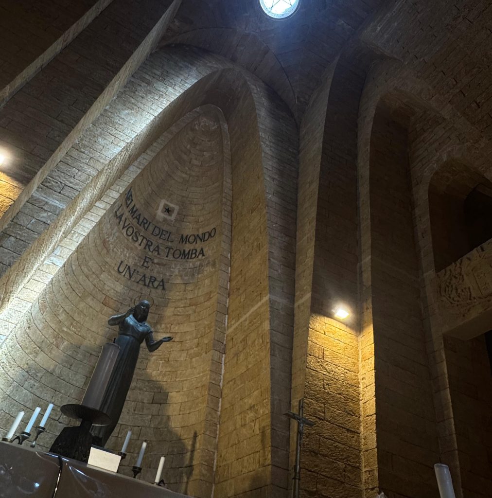 Il primo impatto è stato visivo e potente. Quell’enorme struttura, alta e solenne, ci ha subito dato la sensazione di qualcosa da rispettare profondamente. Non intimidisce, ma invita al raccoglimento. È un monumento che non si limita a “essere visto”: si sente, si respira, si interiorizza. Mentre salivamo lungo il viale che conduce alla base, tra il verde delle palme e il blu del mare, c’era un silenzio quasi sacro.