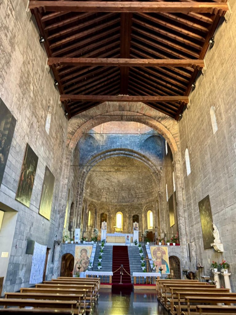 In pochi la notano davvero. Eppure, chi sale i gradini che la separano dalla strada, entra in uno spazio dove storia, arte e silenzio convivono da oltre mille anni. Qui il frastuono cittadino si dissolve, lasciando spazio a una quiete rara, quasi sacrale, che invita a rallentare, osservare, ascoltare.