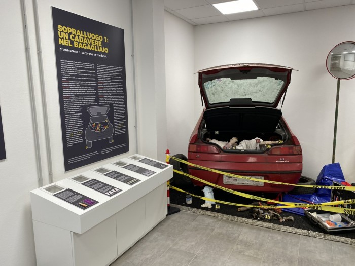 Nella quarta sala si respira un po’ di più, per lo meno perché si torna nuovamente a un tema più vicino a quanto già conosciamo. Si parla infatti di “Crime”, ovvero di Crimine, e di patologia forense, che è la disciplina che studia i cadaveri per capire se la morte sia avvenuta per mano di terzi. A spiegare sopralluoghi, autopsie, indagini di laboratorio, perizie e ricostruzioni dei fatti sono due diorami ben riusciti, tra cui quello di un cadavere ritrovato nel baule di una macchina: una scena del crimine indagata in ogni particolare, tutta da leggere e da comprendere. A essere interessanti, a nostro avviso, sono in particolare due aspetti: l’importanza dell’interdisciplinarietà, della collaborazione tra scienze diverse, nel risolvere un caso (scienze che naturalmente hanno collaborato alla ideazione dei pannelli e dei casi); e l’importanza delle autopsie, esterne e soprattutto interne, strumento indispensabile per indagare non solo le morti sospette o non chiare, ma anche per conoscere malattie nascoste e pericoli per la società – molti Paesi, ci spiega un pannello, lamentano un calo delle autopsie, viste spesso come lesive della dignità della persona, autopsie che invece sono fondamentali per conoscere per esempio femminicidi, morti in culla, maltrattamenti, abusi, infezioni ambientali e così via.