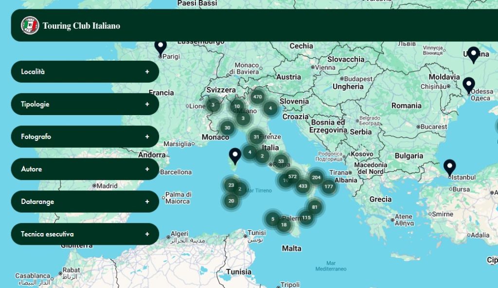 Una mappa geografica interattiva consente di navigare i contenuti a partire dai territori, valorizzando il legame profondo tra i materiali dell’archivio e i luoghi d’Italia. Le riviste storiche del Touring sono sfogliabili online, restituendo decenni di reportage, illustrazioni e racconti di viaggio.