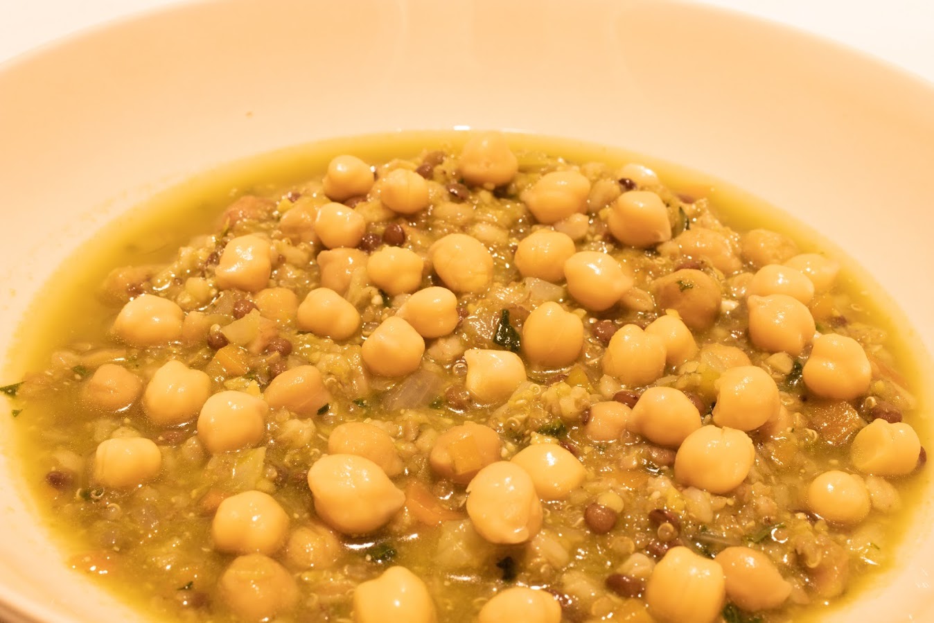 Zuppa di ceci, cicerchie, lenticchie, castagne e cavolo nero